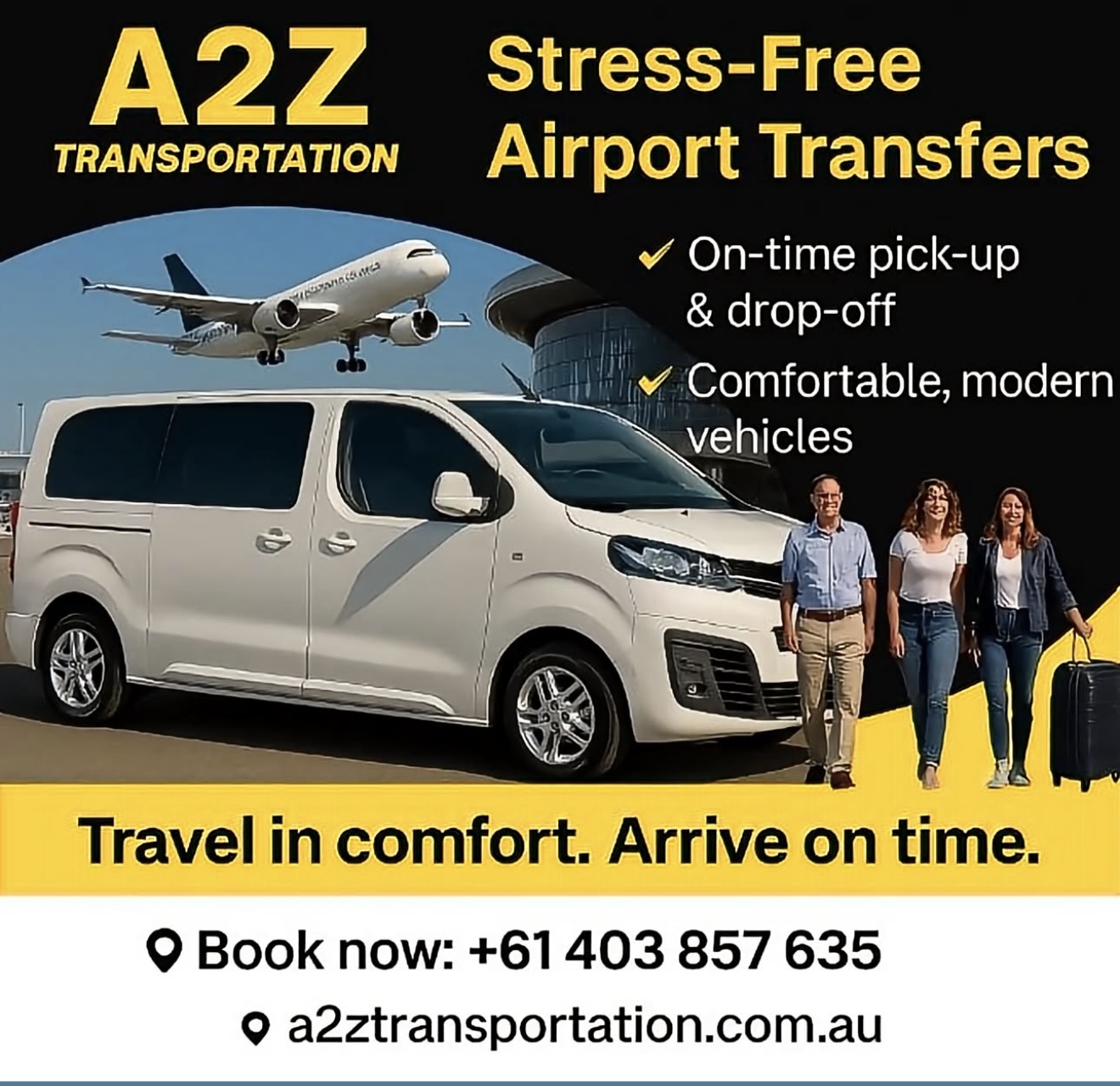 A2z were brilliant! Bernard provided an extremely professional service for myself and family transporting us to and from Sydney airport. Communication was exceptional and the price couldn’t be beaten. Bernard was really friendly with much worldwide travel experience. We will be certainly using A2z in the future. Thanks for providing us a safe journey Bernard. More...